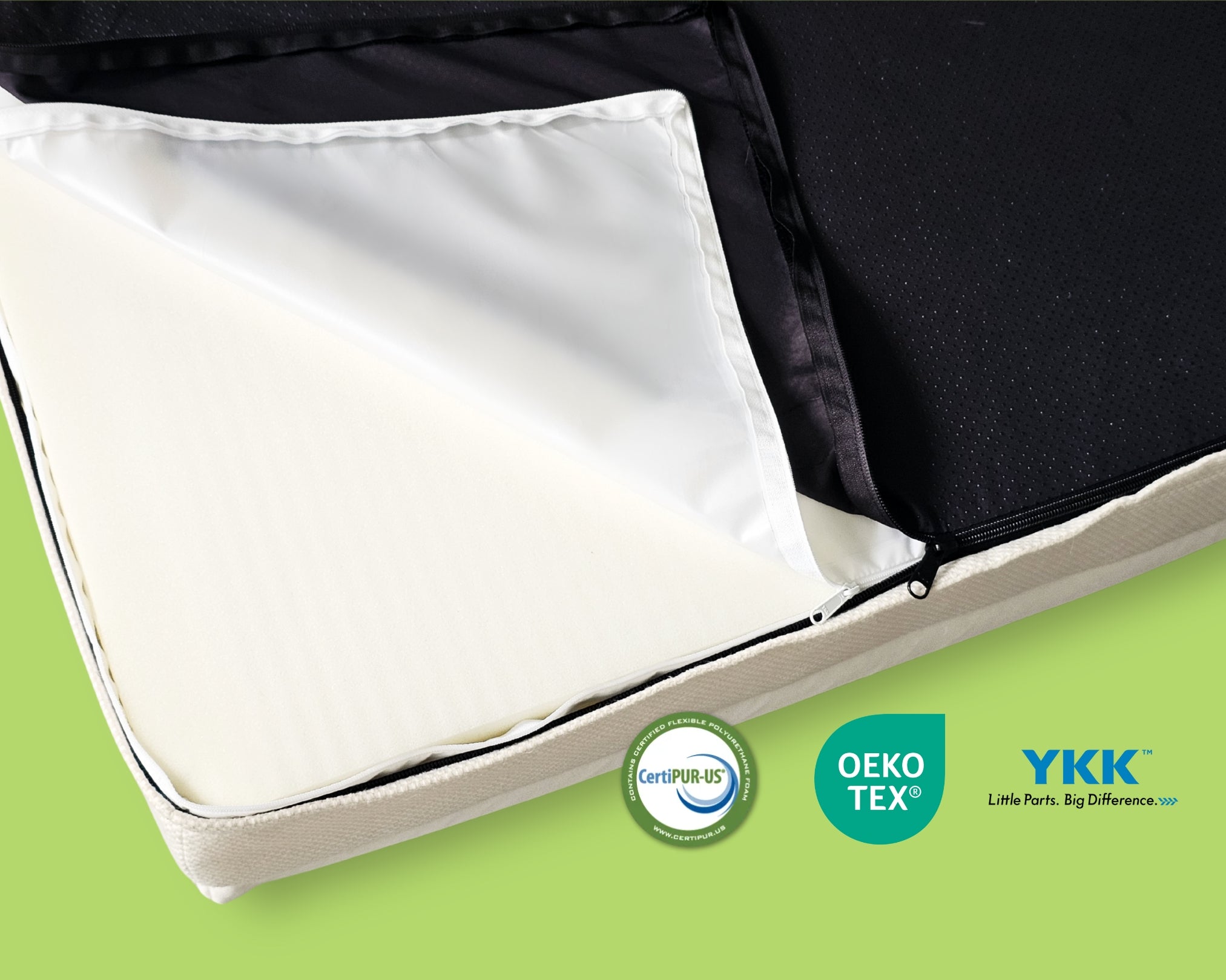 Tofu Beds are wrapped in OEKO-TEX® Standard 100 certified microsuede covers and made with foam certified by CertiPUR-US®. These beds are not only comfortable and durable but also free from formaldehyde, mercury, lead, and other harmful chemicals. This ensures that both you and your pup can sleep soundly at night.